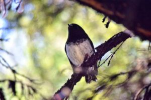 Of course, the easiest birds to see are the tui because we can usually hear them first. We are surprised, however, to see heaps of cute and tiny native birds who seem more intrigued by us than we are of them (Ok, that’s not true, we are obsessed with birds). Tiny birds called tomtits fly onto branches half a metre away from our face, as if to check us out, then fly from branch to branch around us before flying away because we are just boring humans. North Island robins and fat fantails are left in our wake (always remember to turn around if you want to see birds) looking for any upturned bugs we might have left with our feet. We see tiny white birds called whiteheads that also don’t seem to be too bothered by us taking photos right underneath them.