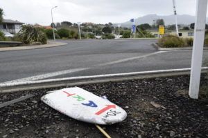 By this point we are losing hope. Where are all the artists in Raglan?! Has there been some sort of artist apocalypse? There must be someone out there holding a paintbrush that has got lost. If you find them, please send them back to Raglan. Matters don’t get any better when we spot a broken surfboard lying next to the road with the word painted on it: “Art”. (See image above).