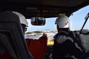 As we are heading down a gravel road to our entry point to the sand dunes, Warrick asks us: “Are you Ok with speed?”