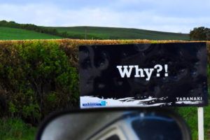 Back on the road, it’s around the town of Waverly that we are officially leaving Taranaki. There are signs on the side of the road saying: “You are about to leave Taranaki”, then another sign: “Why?” and another one: “We’d love for you to stay”. Oh, come on Taranaki! You are making this much harder than it needs to be.