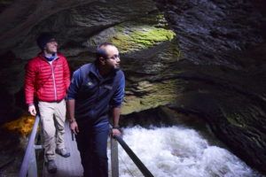 Back on the metal walking platforms we make our way back through the caves, stopping at a different viewpoint of that tumultuous waterfall along the way.