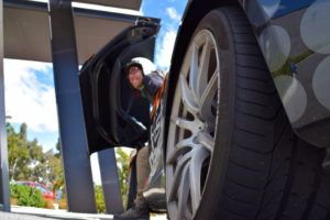 Long corners, tight turns, over the bridge, and under the bridge, Andrew explains every aspect of this 4.1km circuit – the effects of which we find out in our second lap. Andrew puts power to the pedal and we are seeing that this bulky Porsche Cayenne is more than just a family car! We are slipping and sliding on the leather seats as we fly around corners. Yep, this is far better than a video game!