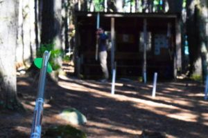 A walkway decorated in most awesome authentic-looking way, with large ropes tied between tree trunks, leads us to a small shack looking out toward two targets.