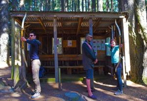 Thankfully, our archery experience with Newzengland, is sheltered in the woods, so any stray arrows can only be blamed on us! Our host, Neil, comes and collects us from the grand building of the Terrace Downs reception, along with his dog, Ted, and takes us into a small area of pine forest. Yep, this is EXACTLY like Robin Hood!