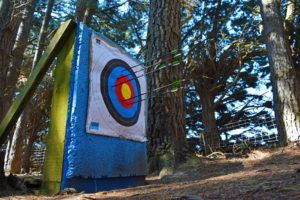 Neil gives us tips along the way, getting us to reach a better place on the target just by getting us the adjust the tiniest thing. Then we graduate to the next level: doing some archery challenges.