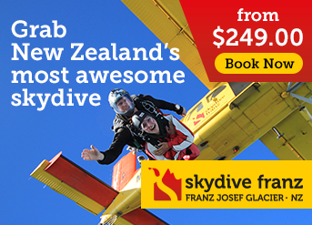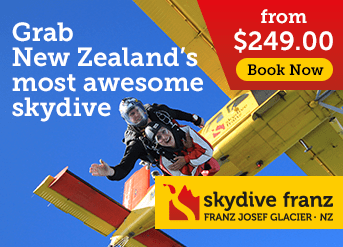 You can do a hike on and in the ice or skydive overhead with Skydive Franz Josef & Fox Glacier – the only skydiving operation in New Zealand offering jumps from a helicopter!